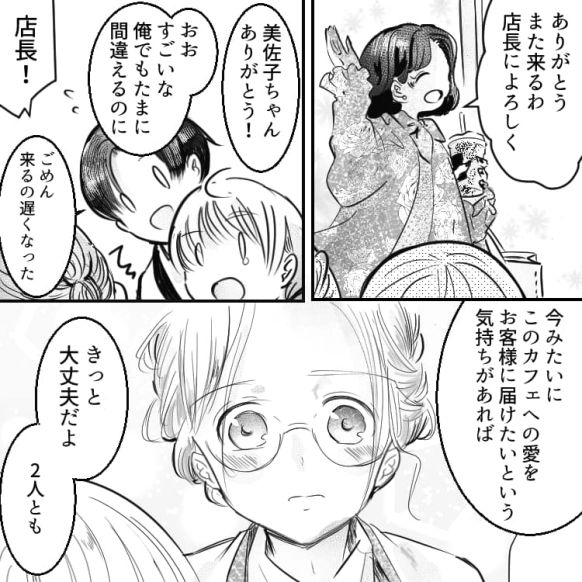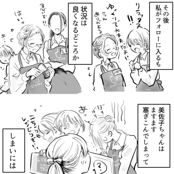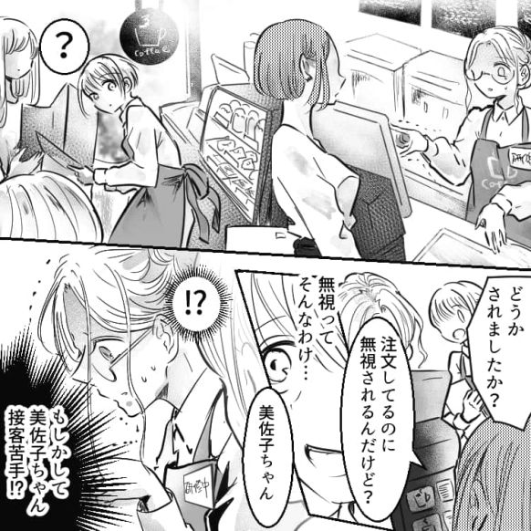 主人公はカフェでアルバイトを始めました。同期の美佐子ちゃんは研修期間なのに、すでにメニューを全部暗記しているくらい優秀な子です。