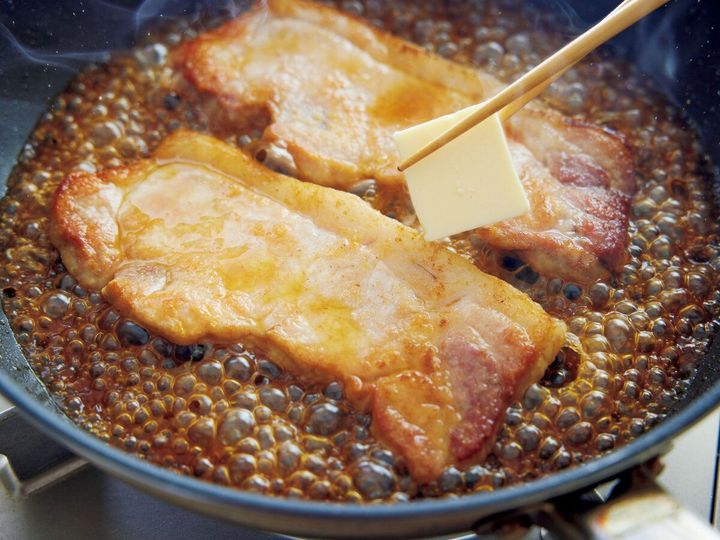 3. いつもの照り焼きを格上げ!『豚肉のレモンバター照り焼き』のレシピ【そり返らないで焼くコツ】