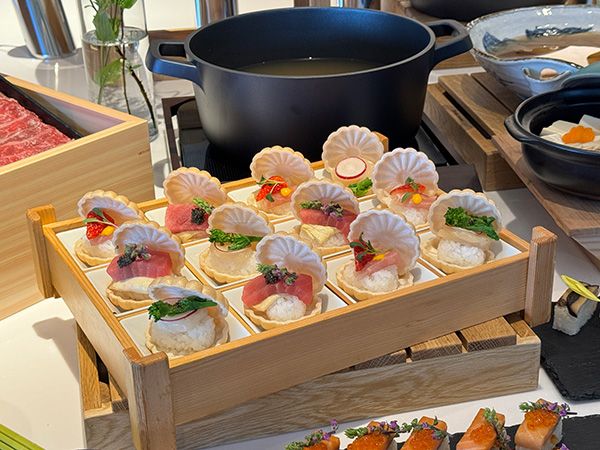 グランドメルキュール11軒では、日本の代表寿司と最中を組み合わせ、海鮮やフルーツをネタに「もなか寿司」を提供。