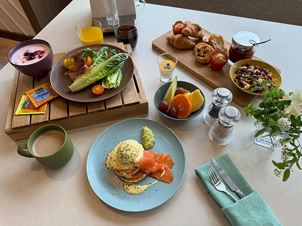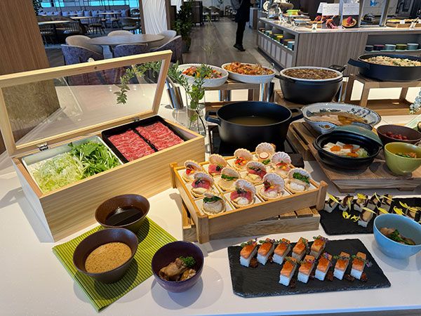 朝食も種類はとても豊富で、ホテルビュッフェ朝食の定番はもちろん、「ミルクほうとう」や「富士の介とイクラののっけ丼」など、地元食材を楽しめます。