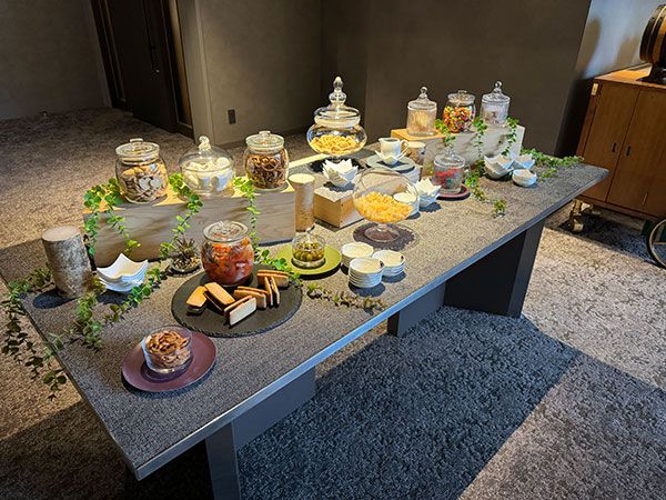 15:00〜18:00のイブニングタイムは、スパークリングワインやビール、コーヒー・紅茶のドリンクと一緒に山梨名物の信玄餅もいただくことができます。