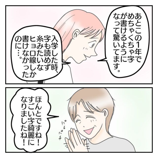 ⁡字を書くことについても、筆圧が弱く、幼稚園の年長もヒョロヒョロの線しか書けなくて、字も読めなくて・・・。当時本人に興味がなかったので私もあまりいろいろできずそのまま入学だったのですが、最初に比べると本当に字が濃く、驚くほど綺麗になりました。学校まじすごっ!って思いました笑