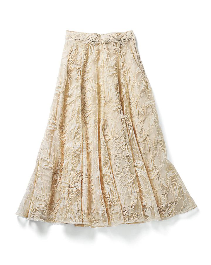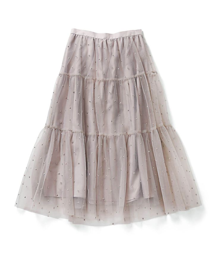 さりげないドット刺しゅうが華やかなポイントに。ボリュームたっぷりのチュールで美脚効果も。