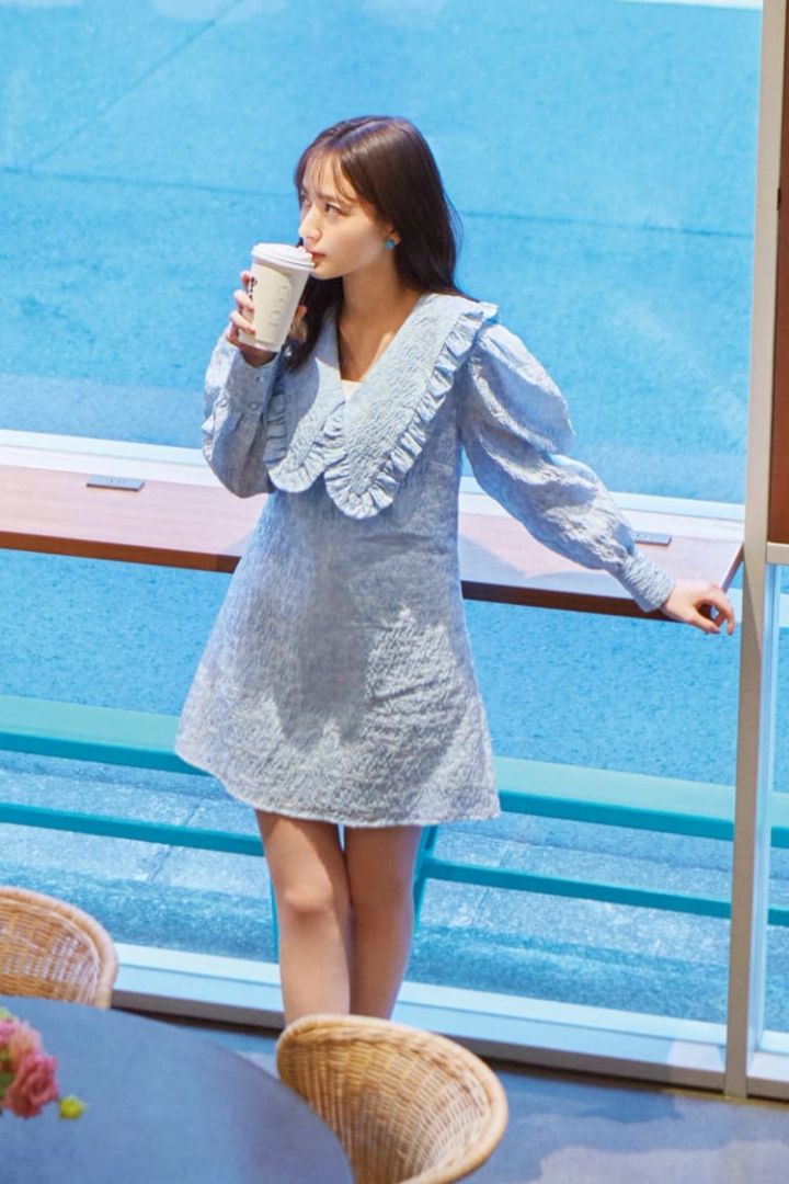 ブルーミニワンピース 22,880円/シスタージェーン(ザ・ウォール ショールーム)イヤリング 4,050円/アビステ インナー/スタイリスト私物