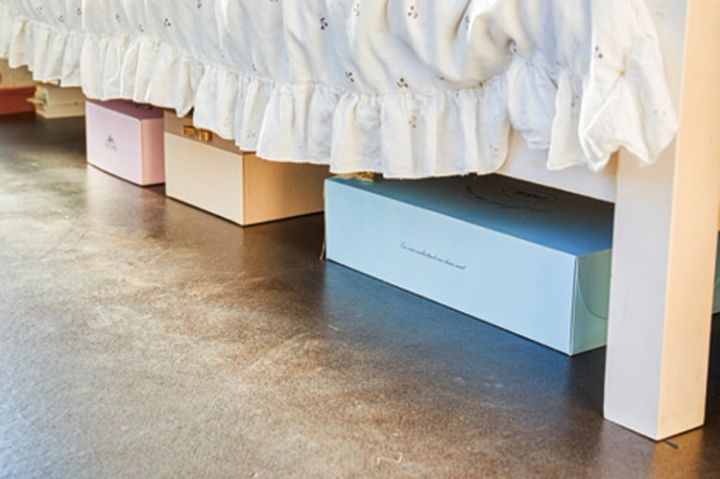 ブランド物の箱などは、とっておくだけじゃ意味ないので収納に使う。ベッド下収納にすれば、見えてもおしゃれ!