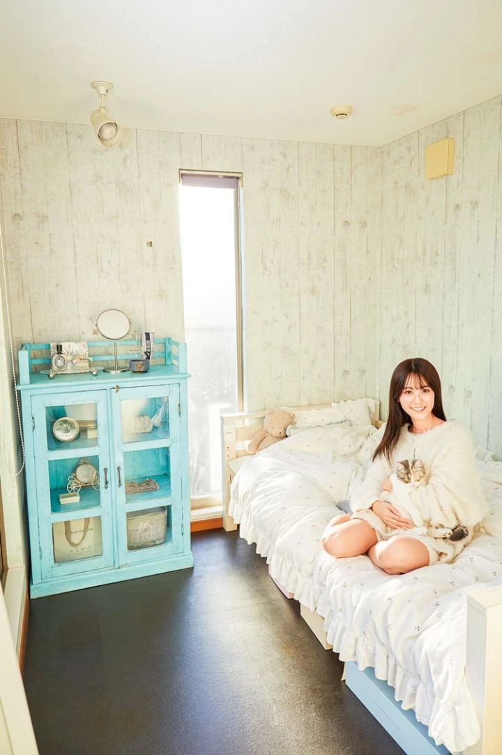 「居心地がよくて、ずっと実家暮らしです。自分のお部屋はあまり広くないので物は少なめに。無機質なコンクリートの壁がお気に入り。雰囲気は、ヨーロピアン調を意識しています。」