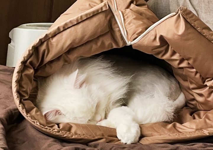 雪国で、暮らすぼく。さむい日は、この中で寝てる。買ってもらったのは3年前。使いこなせるようになったのは今年。