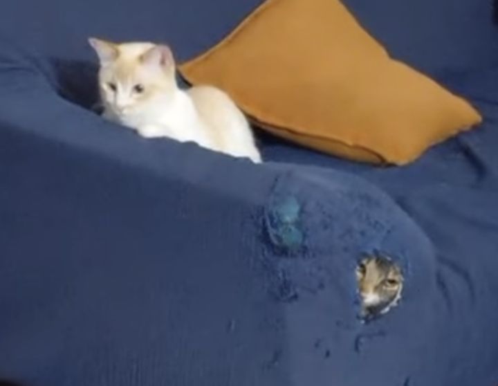 3. よ〜く見て? このソファはすでに猫に占領されています。
