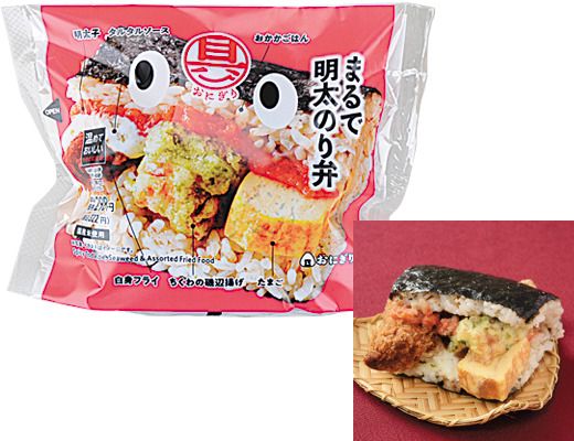 おかかご飯に、白身フライ・タルタルソース・ちくわの磯辺揚げ・玉子焼といったのり弁の人気具材と明太子がギュッと詰まっています。お花見やピクニックでも、お箸要らずで明太のり弁を楽しめます。
