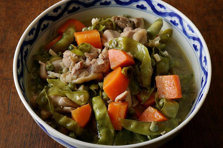さとうざやとは、糖度の高いえんどう豆です。洋風の煮物ですが、白いご飯にもよく合います。料理研究家の瀬尾幸子さんに、旬の食材を使った簡単につくれて、でもしっかりと美味しい主菜レシピを教えてもらいました。