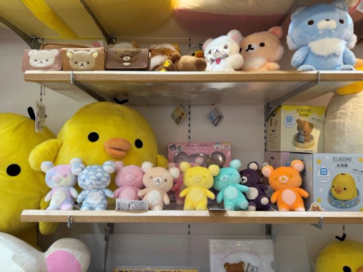 ショールームの中を見渡すと、360度どこを見てもキャラクターだらけ!特にサンエックスを代表する大人気キャラクター「リラックマ」のグッズが1番多く、天井までびっしりとディスプレイされています。