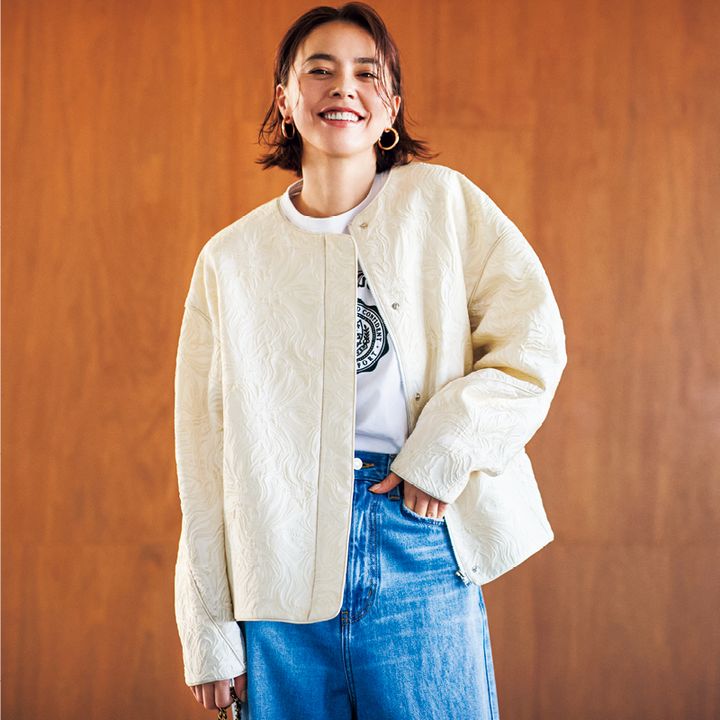 ジャカード生地&ゆったりフォルムの ブルゾンならデニムコーデも コンサバに見せてくれる