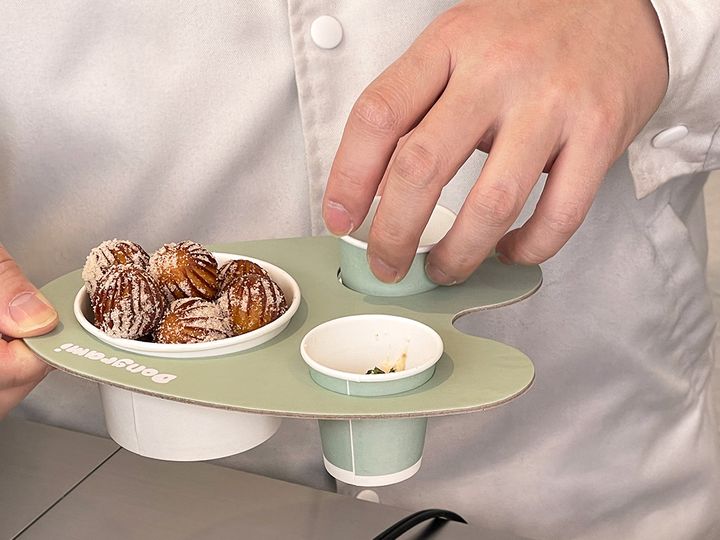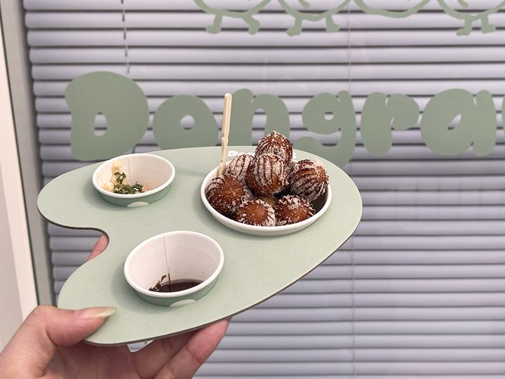 2024年2月、新大久保にチュロスボール専門店「Dongrami(どんぐらみ)」がオープン。チュロスといえば棒状のものをイメージしますが、なんとここでは丸いチュロスボールが楽しめるんです。絵の具のパレットのようなトレーで、SNS映えも叶いますよ♪