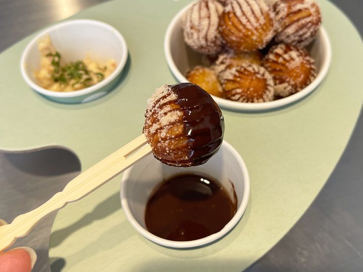 外はサクサク、中はもちもちしていて、揚げたてならではのおいしさが楽しめます。チュロスボールの上にはシナモンシュガーがかかっているので、そのままでもシンプルでおいしい!