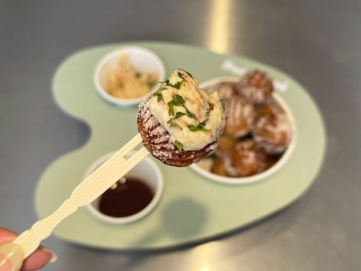 ソースは、チーズやガーリック、刻んだベーコンがたっぷり入っていて濃厚な味わい。ガーリックのパンチが利いたカルボナーラソース×甘さのあるチュロスボールは、甘じょっぱさが癖になります。