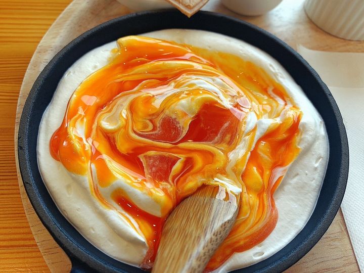 小さなフライパンに、綺麗な渦巻き状になった生クリームが入った状態で運ばれてきました。