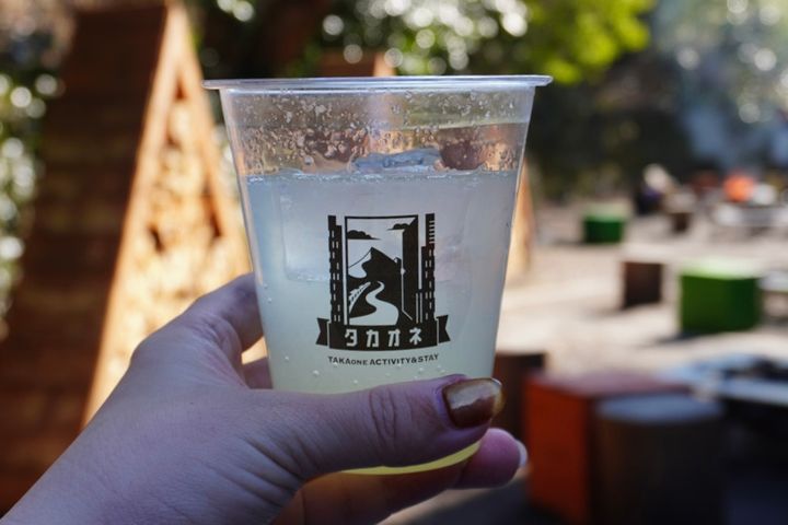 再び〈タカオネ〉に戻って、屋外のNAKA-NIWAへ。なんとこちらでは、焚き火をしながら、美味しいラーメンまでいただけてしまうのです。お酒も飲んで、ゆらめく火に癒されて、くぅ〜最高!