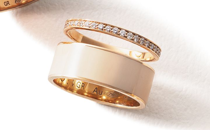 クラシックでモダン、幾何学的でいてフェミニン…と双対のバランスを感じるコレクション。一度見ると忘れないインパクトは、ひとつで十分な華やかさ。どんなシーンにもエレガントに寄り添う相棒リングとして発売当時から脚光を浴び、今もおしゃれママ達の手元を占拠中。