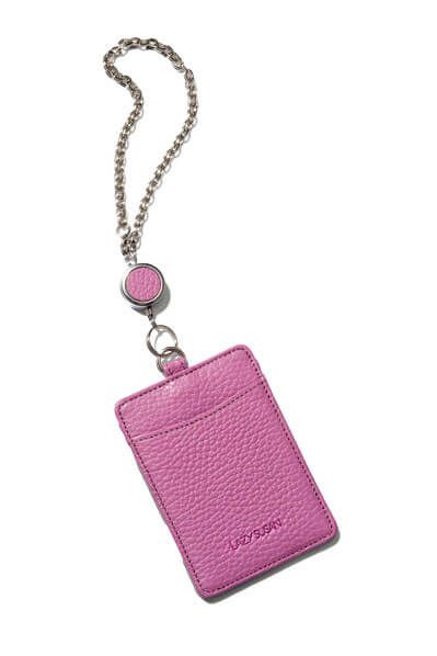 バッグの中で映える鮮やかなラベンダーカラー。リールつきだから定期入れとしてもIDケースとしても使える。
