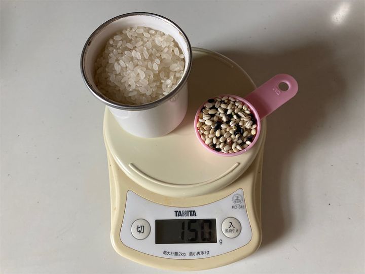白米と雑穀大さじ1(※)を合わせて150gで炊いてみました。