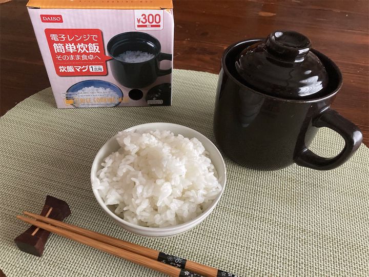 【ダイソー】米1合をレンジで炊ける「炊飯マグ」は“分けて加熱”でふっくら♡慣れればお一人様炊き込みご飯も♪