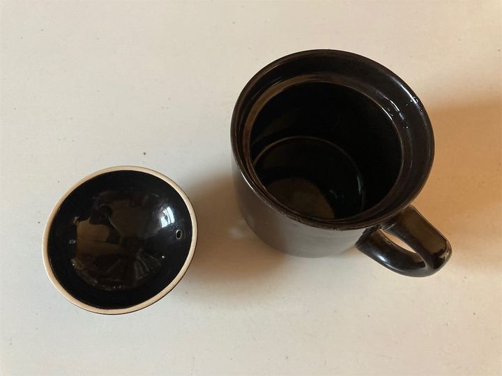 色は、黒とベージュの2種類があり、わたしは黒を購入しました。中には、フタと大きめサイズのマグカップが1つ入っています。