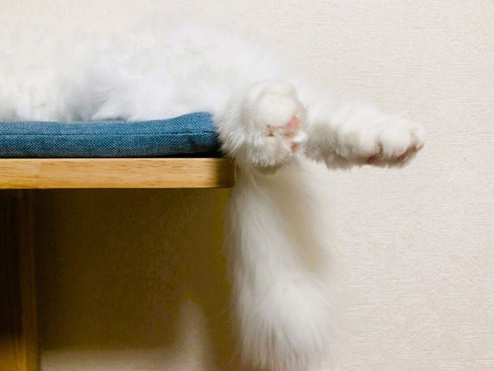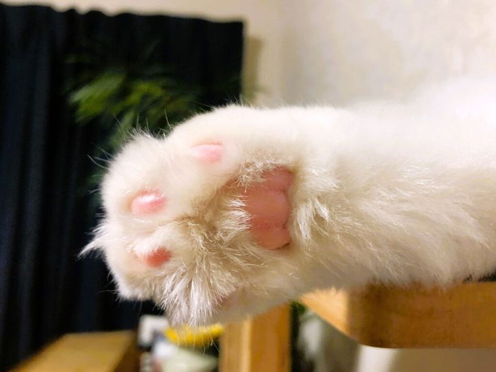 寝てる間に、飼い主が肉球のまわりの毛を切って整えてくれたみたい。思いがけず、すべってケガしたらあぶないからね。そういうやさしさには気がつくタイプ。