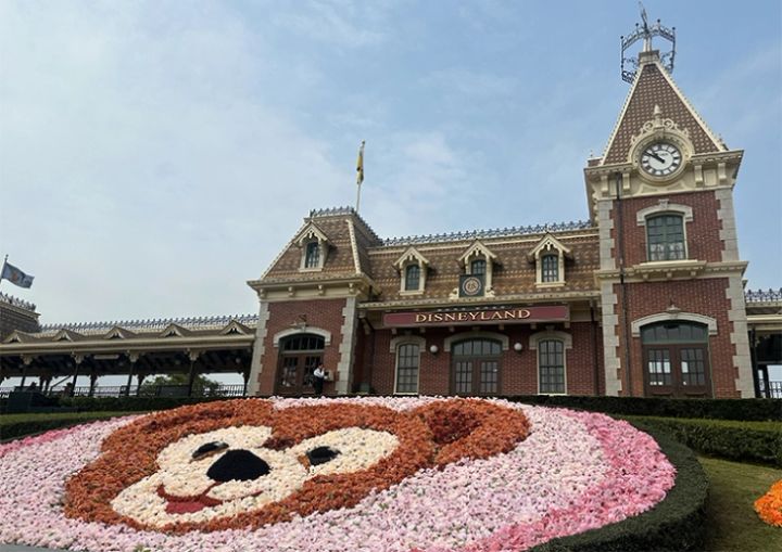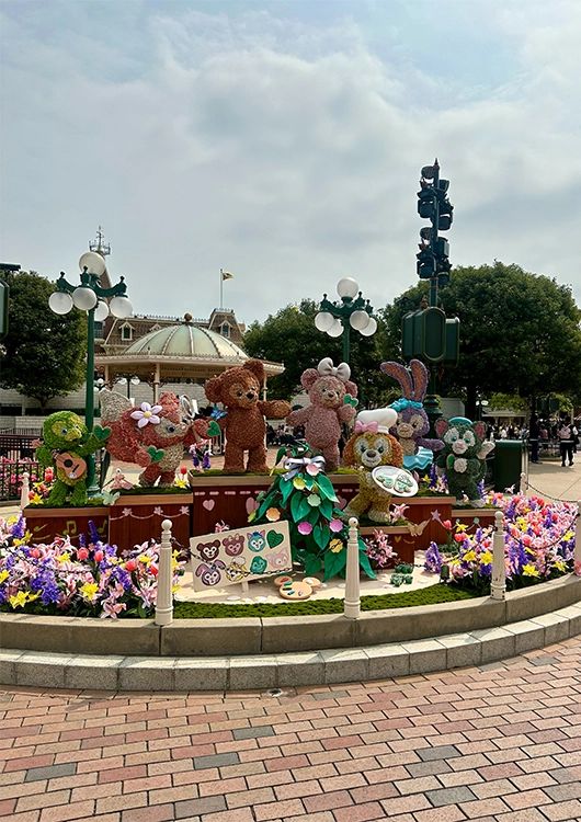 入場すると、まず目の前に飛び込んできたのがお花でできたダッフィーが! 通常はミッキーがお出迎えですが、『ダッフィー&フレンズ プレイ・デイズ』のフェス・フェスティバル期間中は特別にダッフィーにバトンタッチ!