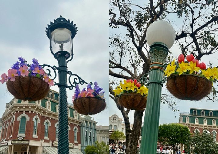 電灯に飾られているお花も、なんとダッフィー&フレンズのキャラクターたちのカラーにチェンジ。細部にまでフェスティバルの特別感を味わえる工夫が施されていました。