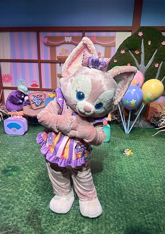 ダッフィー&フレンズ・プレイハウスは、キャラクターたちと会えるグリーティング施設。ファンフェス期間中はリーナ・ベルにも会えちゃうんです!春の可愛らしいコスチュームを纏い、お出迎えしてくれます♪さらにグリーティング空間はキャラクターらしいデコレーションが装飾されていて、没入感もバツグン。スマホを向けると愛嬌たっぷりの動きを見せてくれたり、2ショット写真を撮ったり、キャラクターとの時間を密に楽しめます♡