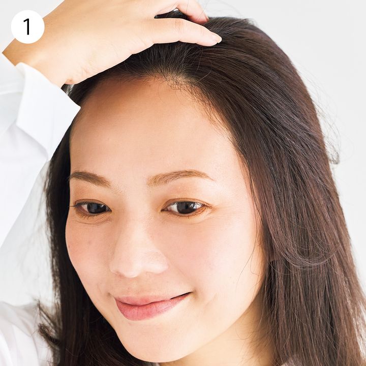 前髪の根元を指で左右に揺らして、クセをほぐします。そうすることでこの後のスタイリングがきれいに仕上がります。