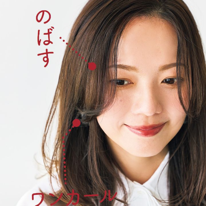 毛先の外ハネワンカールと顔周りの内巻きでニュアンスのある仕上がりに