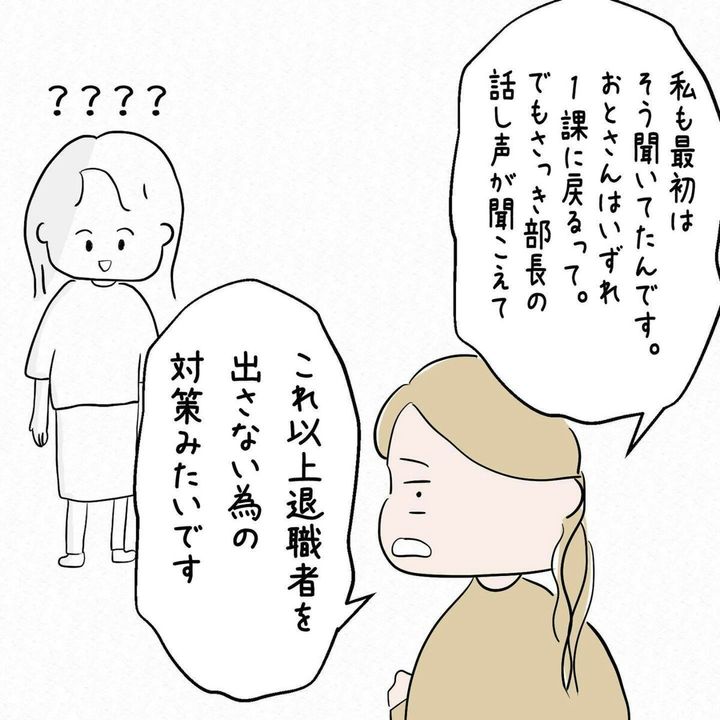 人事権のないおとさんが異動したことによって、退職者が出なくなるという理屈が、いまいち理解しがたいですよね。おとさんのやる気を利用し、他の人を守るための盾にされたようにも感じ取れてしまいます。
