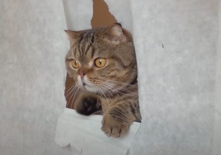 穴あけ放題♪ 猫のために紙の壁を作ってみたら