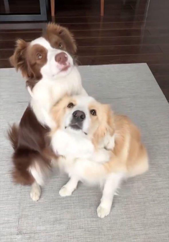 ボーダーコリー達がぎゅっ!ハグをするかわいすぎる姿にキュン!!