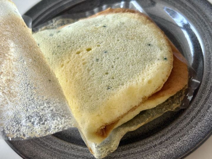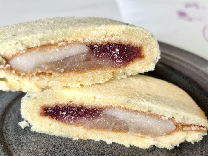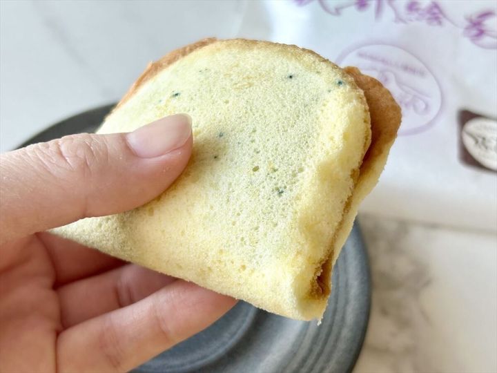 実はこのお菓子には、ブルーベリーピューレも入っていて、ほんのり甘酸っぱさも。やさしい甘さのお菓子のなかで、ブルーベリーの爽やかさがさりげないアクセントになっています。