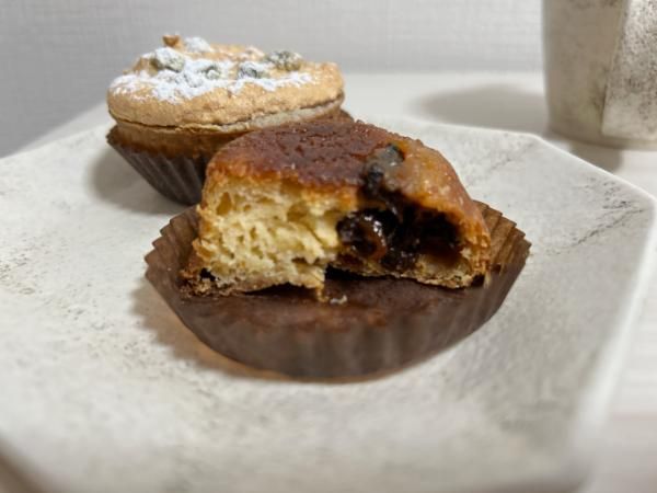 「ファーブルトン」の中には大粒のプルーンが入っています。 カヌレのようなイメージで、外側がガチっとしていて、中の生地はラム酒が入ってふんわり甘くて美味しい♪