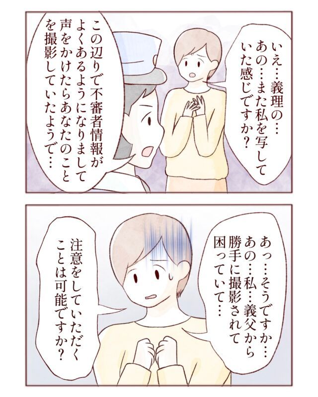 「あっ・・そうですか・・あの・・私・・義父から勝手に撮影されて困っていて・・注意をしていただくことは可能ですか?」
