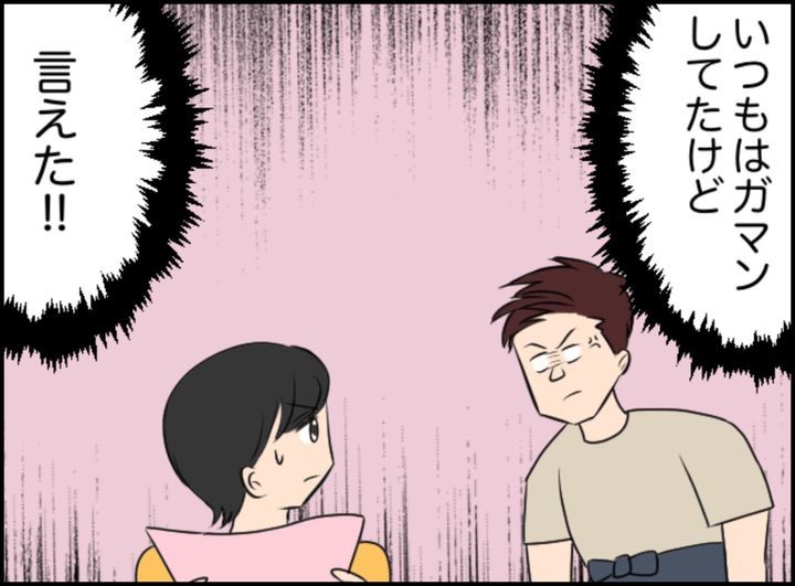 自分の意見を言ったユメさんに対し、夫はモノにあたって去っていきました。普段は、夫に何か言われてもユメさんが我慢してけんかを避けてきましたが、逆の立場になるといとも簡単に機嫌を損ねる夫に、またモヤモヤが…。