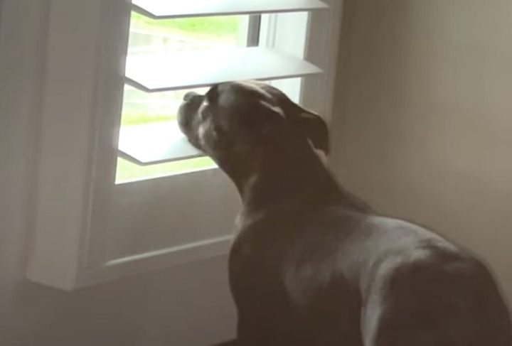 晴れを待つ犬さん、止みそうにない雨に分かりやすくがっかり。