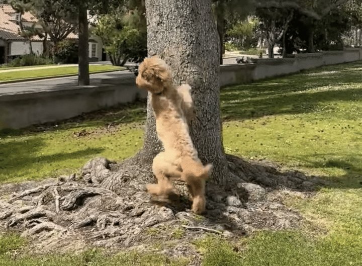 リスを捕まえようとする犬さん、終わらない追いかけっこに夢中!