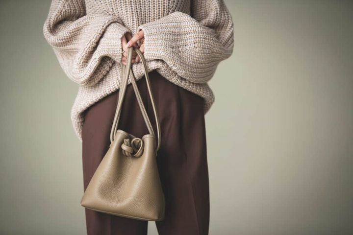 服のワイドシルエットを崩さずになじんでくれる、ちょこんと持てる小ぶりのサイズ感に加えて、優しいフォルム&色合いがお気に入りのVASICのバッグ。背が低めでもバランス良く合わせられるんです。