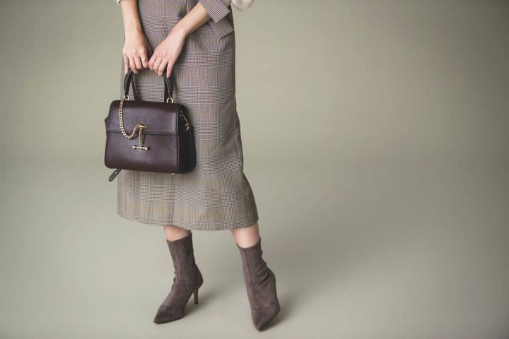バッグはほどよくラフさが出せるブラウンのワンハンドルバッグをコーディネート。ヒールを履きたいけれど、タイトスカートにパンプスだとコンサバになりすぎるので、今年はカジュアルなショートブーツがちょうどいいです。