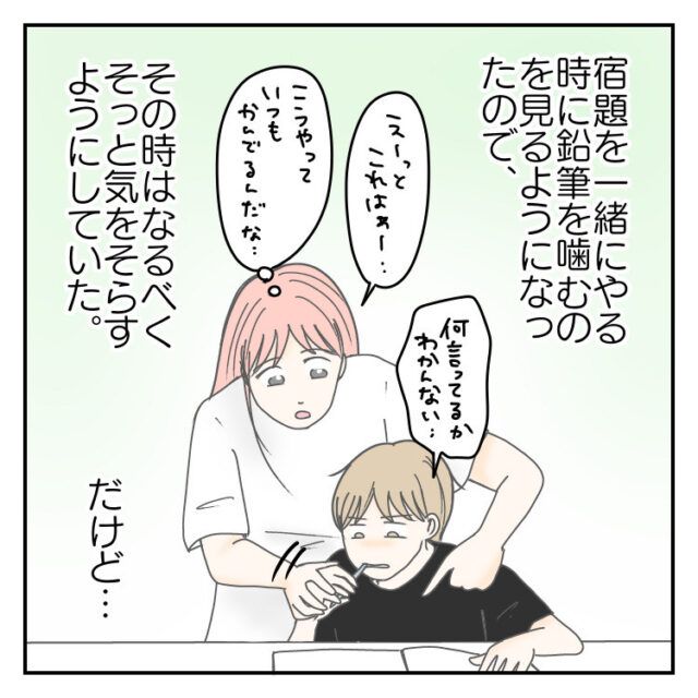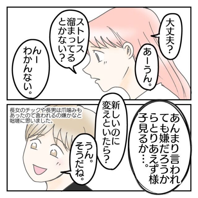 これまで長女のチックや、長男自身も爪噛みなどもあったためあまり突っ込まれたくないことだろうと咄嗟に思い様子を見ることにしました。