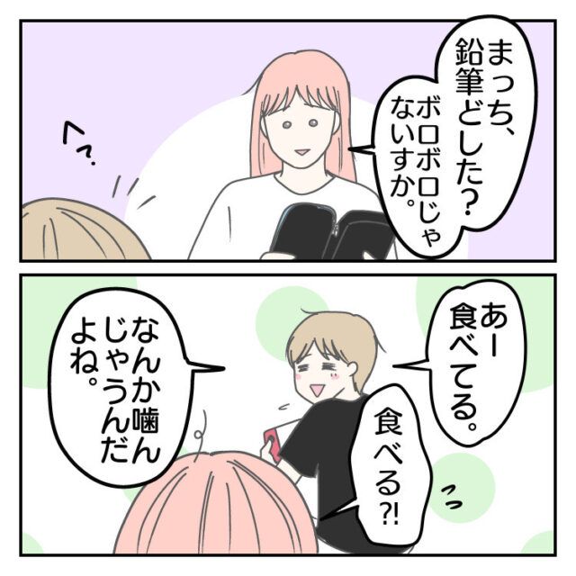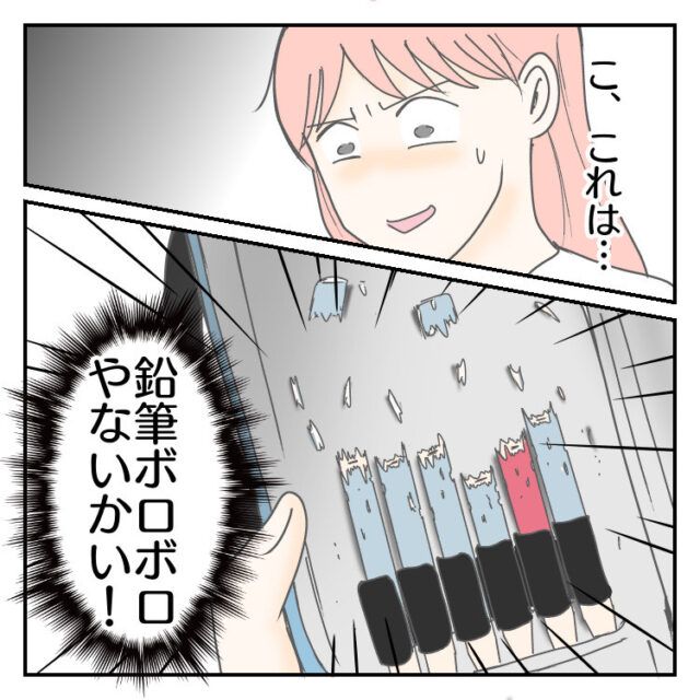 3. [64]噛んでボロボロになった鉛筆・・ストレス?心配だけど・・様子見。学校に行きたくない理由|ねこじまいもみの楽しくワンオペライフ