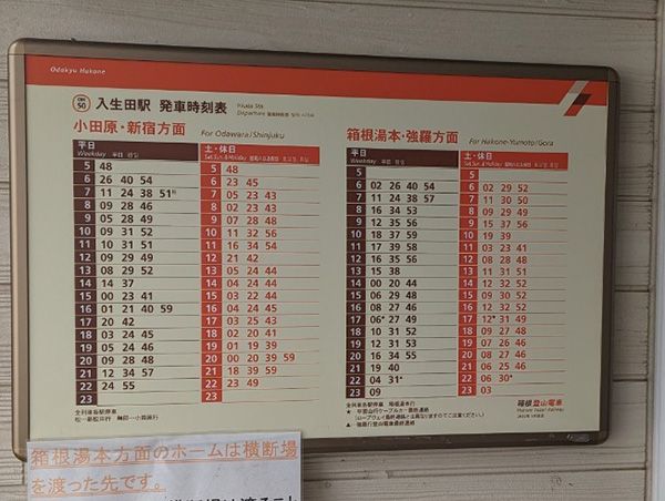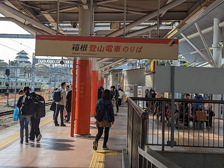 箱根登山鉄道の始発の小田原まで小田急線を利用してくる方は、先頭車両に近い所に乗車すると箱根登山鉄道の乗り換えが楽になるのでオススメです。