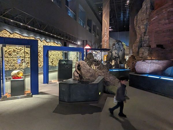 恐竜の化石や、世界中の鉱石や化石、昆虫を間近で見ることができます。恐竜や昆虫が好きな子どもにはたまらない空間です!