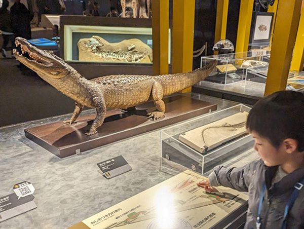 恐竜の化石の下をくぐったり、動物の剥製を間近で見たり、展示物を肌で感じることができます