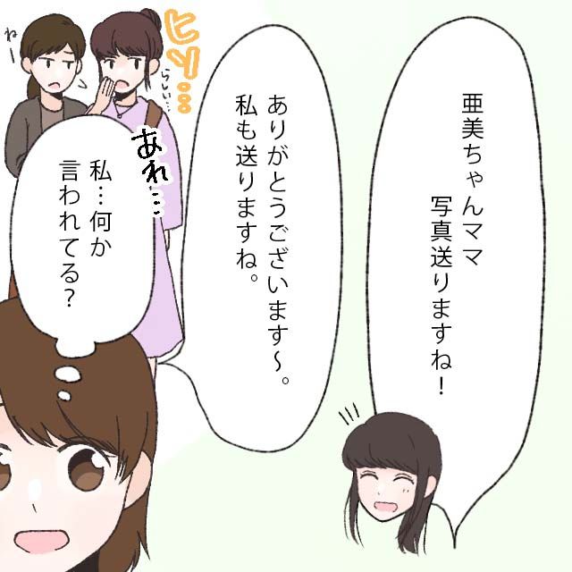 写真を撮り終わると、さっきまで一緒に話していたママ友が遠くからこちらを見てコソコソ話しているのが見えました。