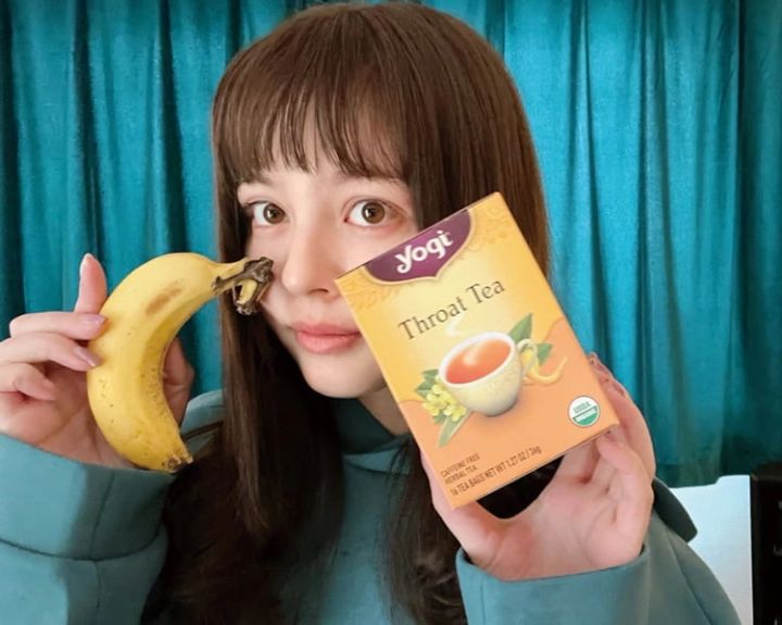 「朝の日課はバナナとYogiのスロートティー♪ 季節のフルーツもいいけど、バナナは手軽に買えるので登場率が高いです!(笑)甘味料なしのお茶がこだわり」